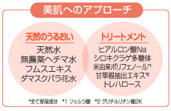 高い保水力をもつトレハロース、シロキクラゲ多糖体、ヒアルロン酸Naがお肌のうるおいをキープ。かさつきを防ぎます。
